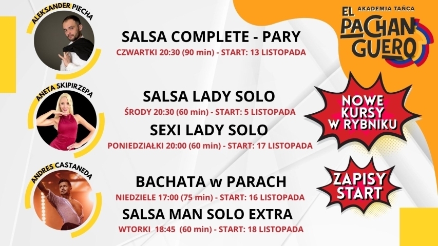 Zapraszamy na nasze nowe kursy tańca od podstaw. Oferujemy zajęcia dla dzieci, młodzieży i dorosłych. Rozpocznij nowy sezon taneczny w ✩ AKADEMII TAŃCA EL PACHANGUERO ✩ największej i najaktywniejszej szkoły w regionie. Naucz się tańczyć pod okiem DYPLOMOWANYCH INSTRUKTORÓW TAŃCA i aktualnych Mistrzów Polski.
